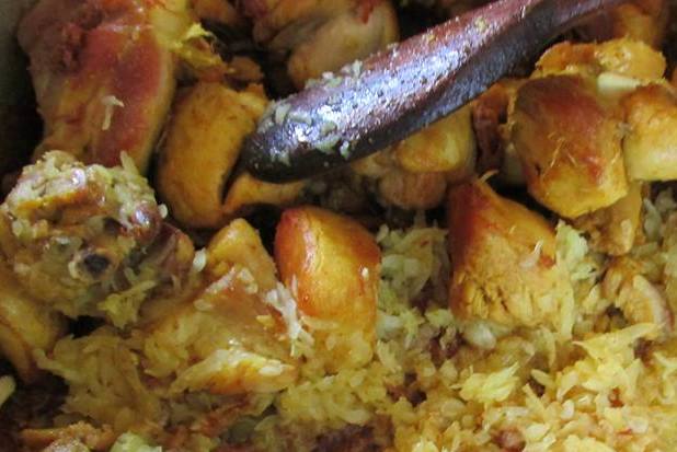 - Tempere o frango com o alho, pimenta do reino, sal e o açafrão. Deixe-o descansar por meia hora;